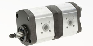 Im Lieferantenauftrag sind neue Doppel - Hydraulikpumpen (Aftermarket) mit 2-Schraubenbefestigung - konische Welle 1:5 (Ø 50,00 mm), für Baumaschinen zu verkaufen.